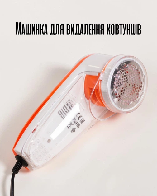 Дротова машинка для катишків A-Plus-220В із щіткою насадкою від вовни та контейнером Білий/Помаранчевий