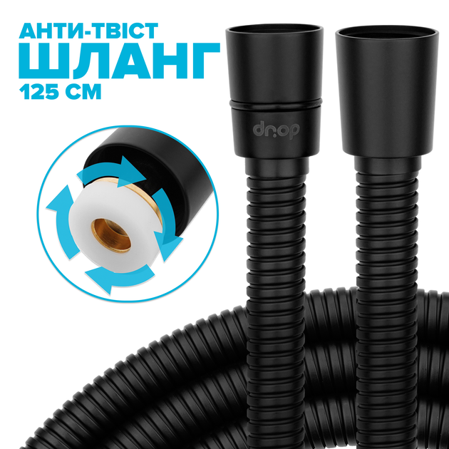 Шланг для душу DROP SH-HM125-PRM-BL - Подвійний Анти-Твіст нержавіюча сталь 125см чорний
