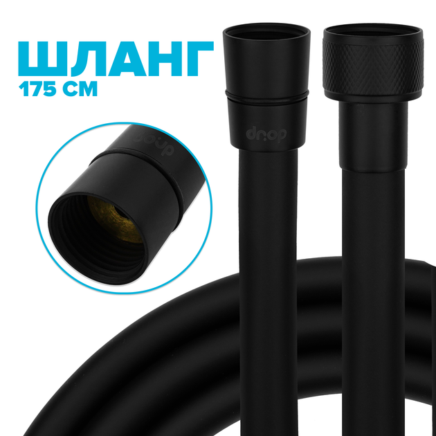 Шланг для душу DROP SH-H175-MID-BL - силіконовий 175см чорний матовий