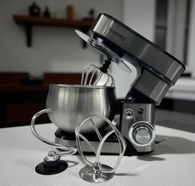 Планетарний міксер Rainberg 3800 Вт, тістоміс, кухонний комбайн, стаціонарний міксер, Сріблястий (68О8)