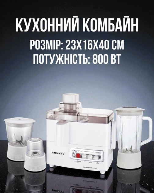 Кухонний комбайн Sokany 4 в 1, з соковижималкою та кавомолкою, блендер 800 Вт, для приготування смачних страв та напоїв