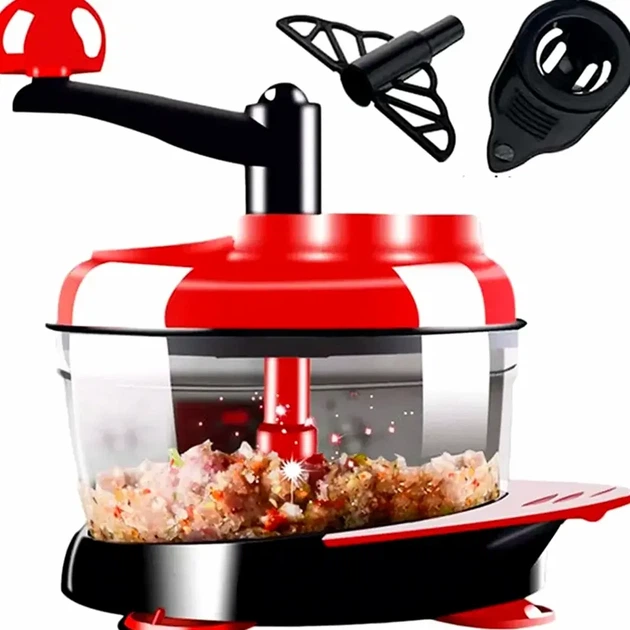 Блендер-подрібнювач 2в1 1,5л ручний механічний комбайн для м'яса та овочів червоний