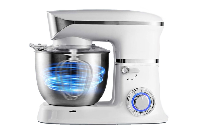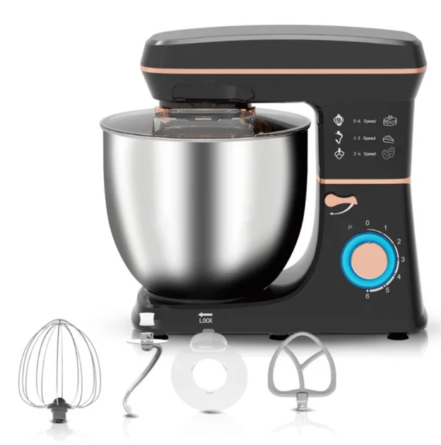 Планетарний кухонний комбайн-міксер-тестоміс+насадки (6 швидкостей, чаша 4л з нержавіючої сталі, Нахил голови, Стійкі присос