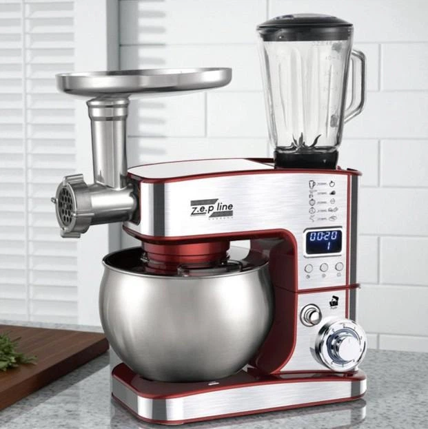 Планетарний комбайн Zepline 6 л, 4200 Вт, із м'ясорубкою, блендером і тістомісом, для дому, кухні, ресторану, кафе Червоний