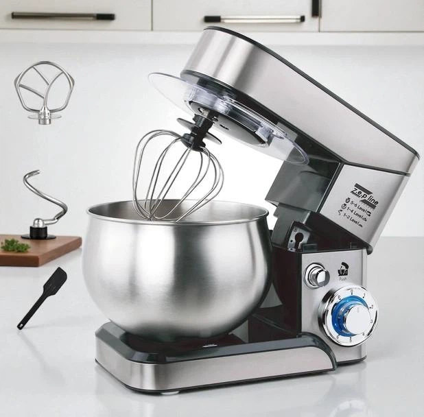 Тістоміс міксер Zepline 3500 Вт з чашею 6 л, підходить для замішування тіста, збивання кремів, соусів та інших сумішей, Сріб