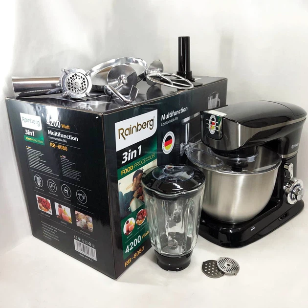 Багатофункціональний кухонний комбайн Rainberg RB-8080 Тістоміс, М'ясорубка, Блендер, Потужний блендер