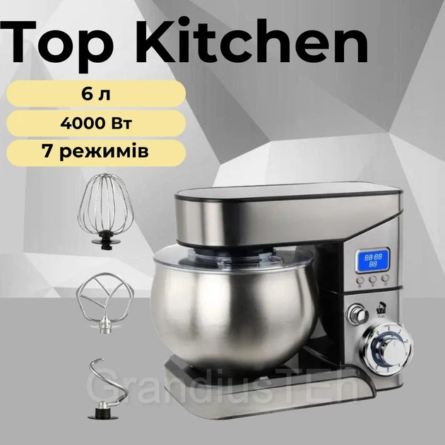 Планетарний міксер Top Kitchen TК00224, 6 л, 4000 Вт, тістоміс, потужний кухонний комбайн, міксер з чашею 6 л