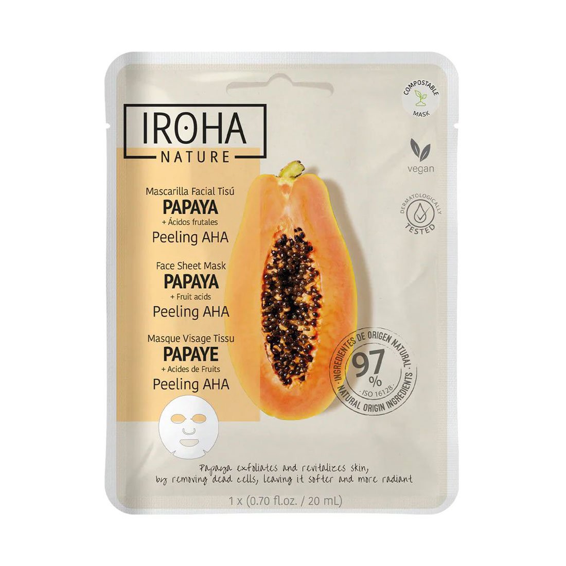Тканинна маска-пілінг для обличчя Iroha Nature Papaya Peeling AHA Face Sheet Mask, 20 мл