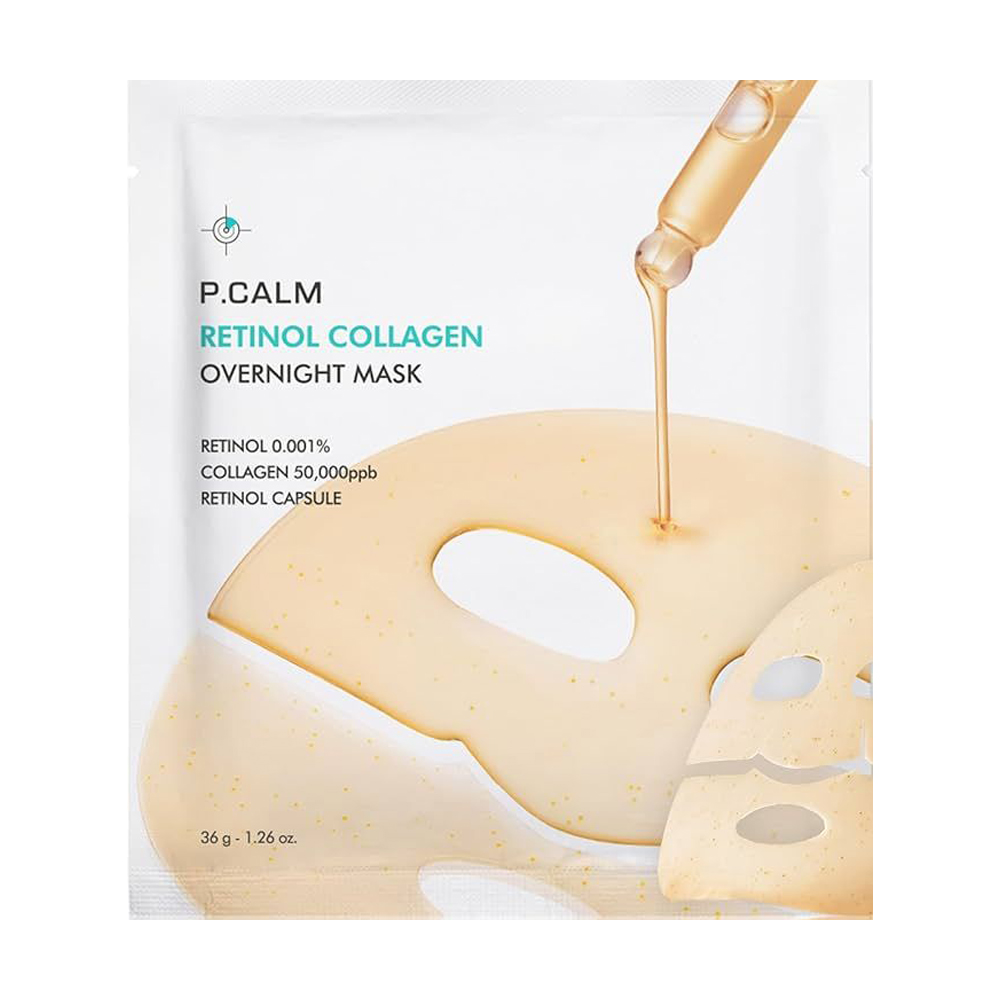 Нічна гідрогелева маска для звуження пор обличчя P.Calm Retinol Collagen Overnight Mask з ретинолом та колагеном, 36 г