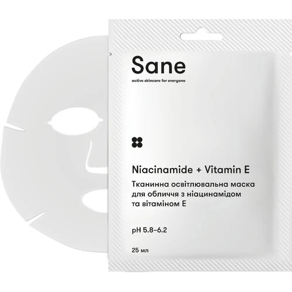 Тканинна освітлювальна маска Sane для обличчя з ніацинамідом та вітаміном Е 25 мл