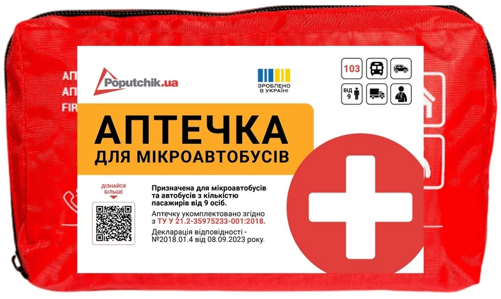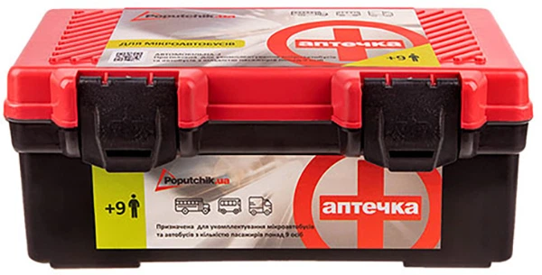 Аптечка медична автомобільна - 2 Poputchik від 9 пас згідно з ТУ пластиковий футляр (02-011-П (VL))
