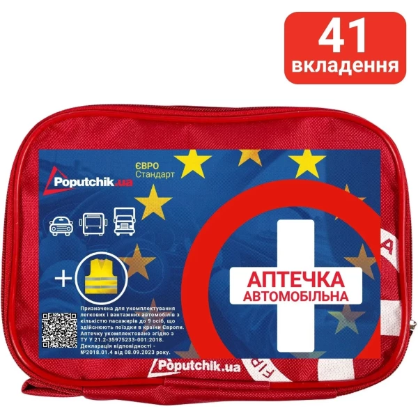 Аптечка автомобільна Євростандарт Poputchik+жилет (02-024-М) м'який футляр