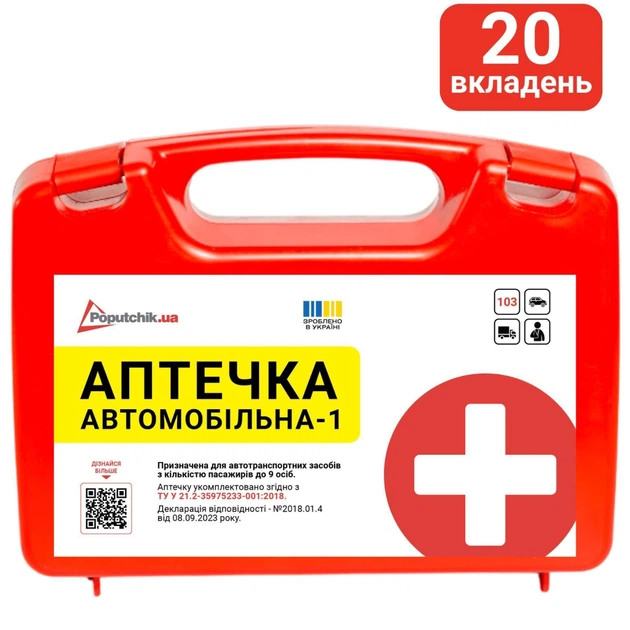 Аптечка медична автомобільна-1 Poputchik згідно ТУ (02-053-П) пластиковий футляр до 06.27