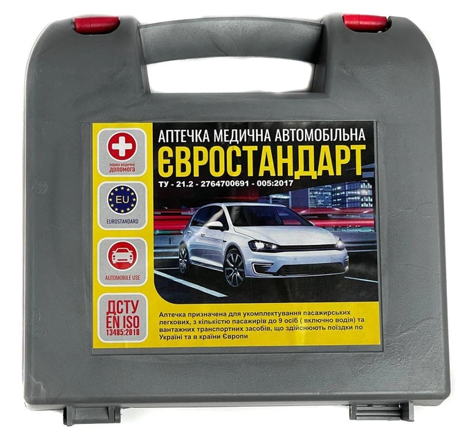 Аптечка автомобільна ЄВРО до 9 чол для подорожі до Європи Сертифікована з Термопокривалом