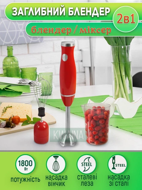 Занурювальний блендер з міксером, подрібнювач багатофункціональний, віночок, мірна склянка, 2 насадки, 1800 Вт 220 В, червон