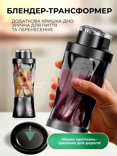 Портативний блендер для смузі 2 в 1 на акумуляторі 700мл