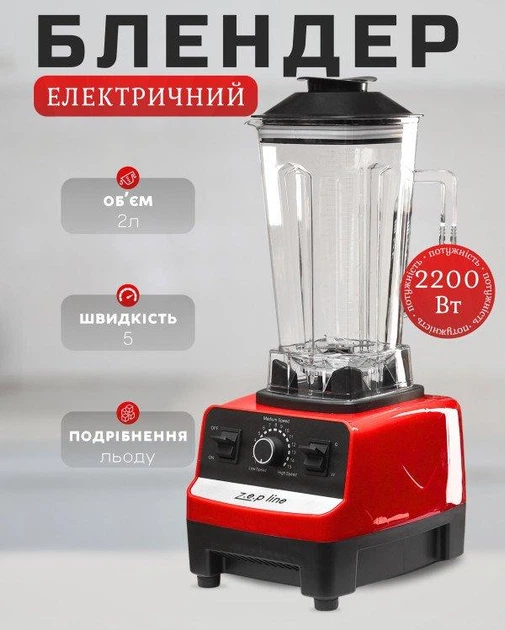 Блендер стаціонарний Zepline ZP-005 – 2200 Вт, 2 л, 5 швидкостей, імпульсний режим