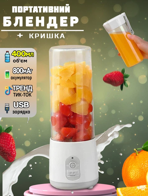 Бездротовий блендер соковитискач BSKV12 спортивний стакан 400 мл з кришкою та ручкою для смузі