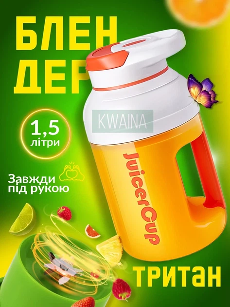 Блендер-соковитискач / Портативний блендер у пляшці D02 1.5л Green (16042)
