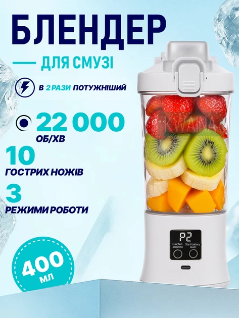 Портативний бездротовий блендер на 400 мл, акумулятором 3000 мАг, блендер-пляшка для смузі, коктейлів, соків, USB-зарядка, Б