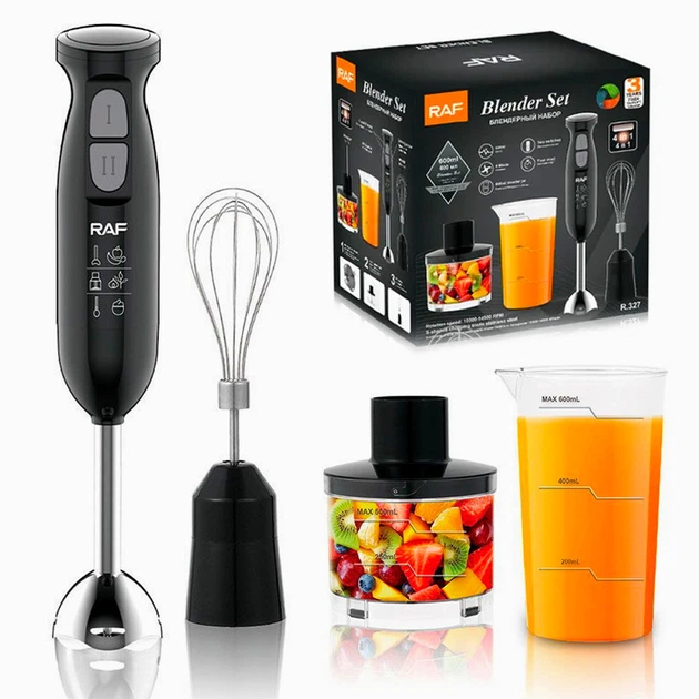 Занурювальний блендер 4в1 340Вт з чашею та насадками чорний RAF R327