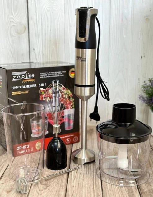 Багатофункціональний подрібнювач блендер 5в1 Zeppelin ZP-О7З 1500Вт ручний занурювальний з чашею та віночком