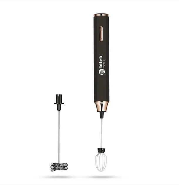 Портативний безпровідний акумуляторний міні-міксер капучинатор BITEK BT-394B 2 в 1 з насадками для яєць і молочної піни 3 шв