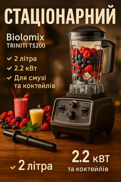 Професійний блендер Biolomix Triniti T5200 2.2 кВт з трітановою чашею 2 л і 3D ножем