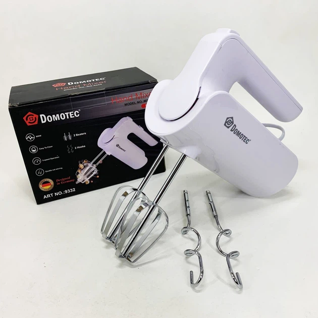 Ручний міксер Domotec R.6653W кухонний міксер із насадками 5 швидкостей 800 Вт білий