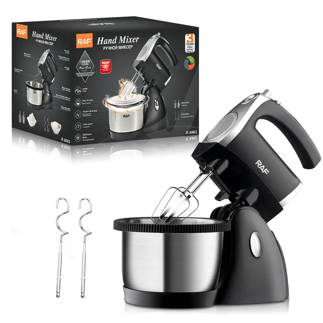 Ручний міксер 5 швидкостей із чашею 2.5 л з нержавіючої сталі RAF R.6662 1000 Вт