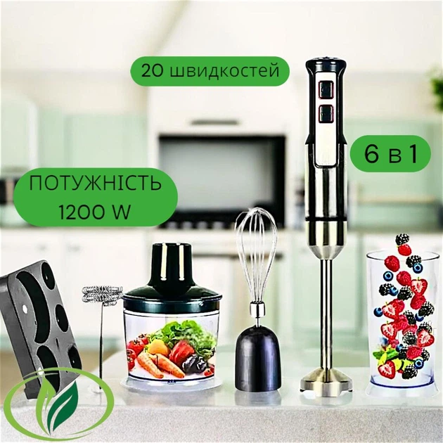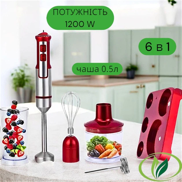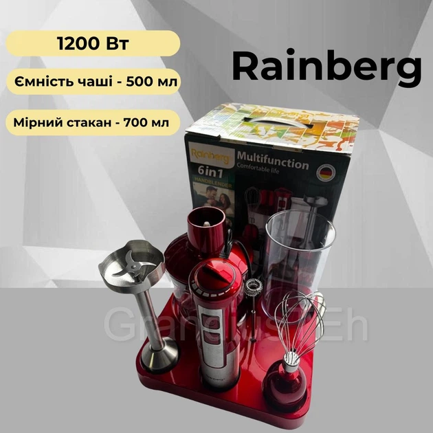 Універсальний блендер 6в1 Rainberg RB-2293 R, 1200 Вт, подрібнювач овочів, занурювальний блендер