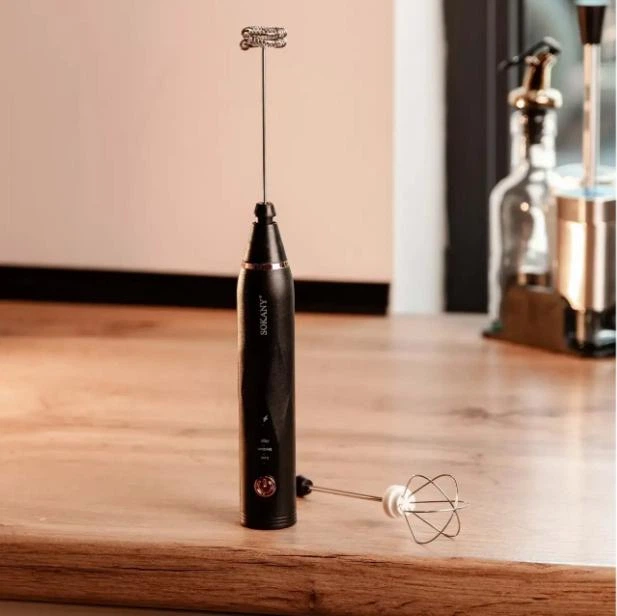 Спінювач молока ручний USB акумуляторний 2 насадки електро вінчик Чорний