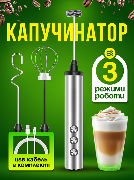 Капучінатор спінювач молока ручний акумуляторний пінозбивач портативний міксер збивач вінчик для молочної пінки кава капучін