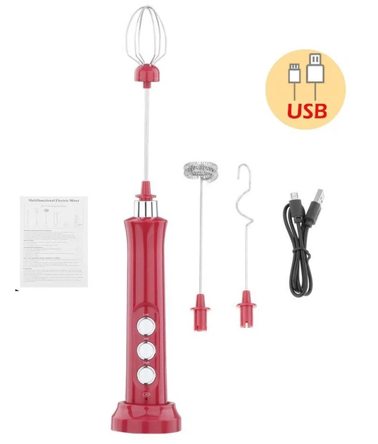 Електричний спінювач молока S3 з USB заряджанням, 3 швидкості, віночок із неіржавкої сталі