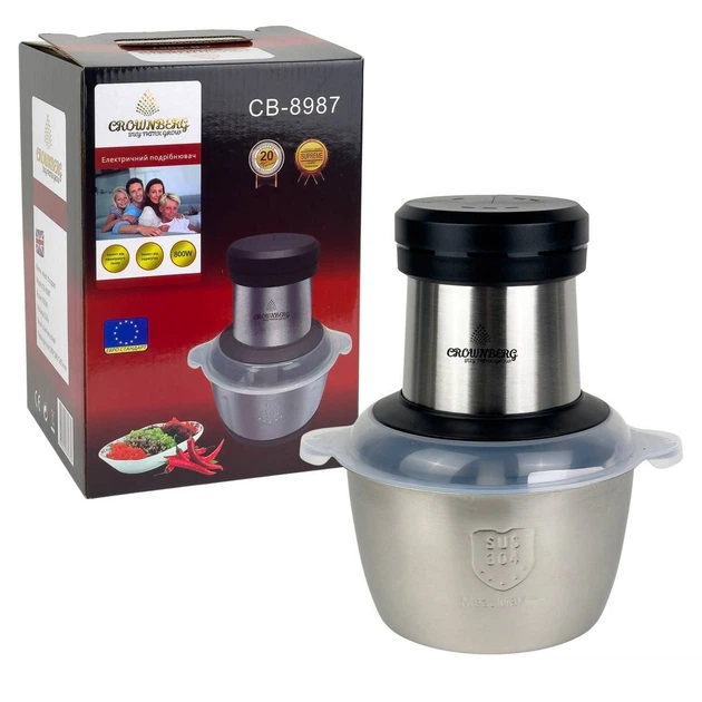 Подрібнювач кухонний Crownberg СВ-8987 2л Метал Блендер для кухни із чашею чоппер для м'яса овочів кухонний комбайн LF227
