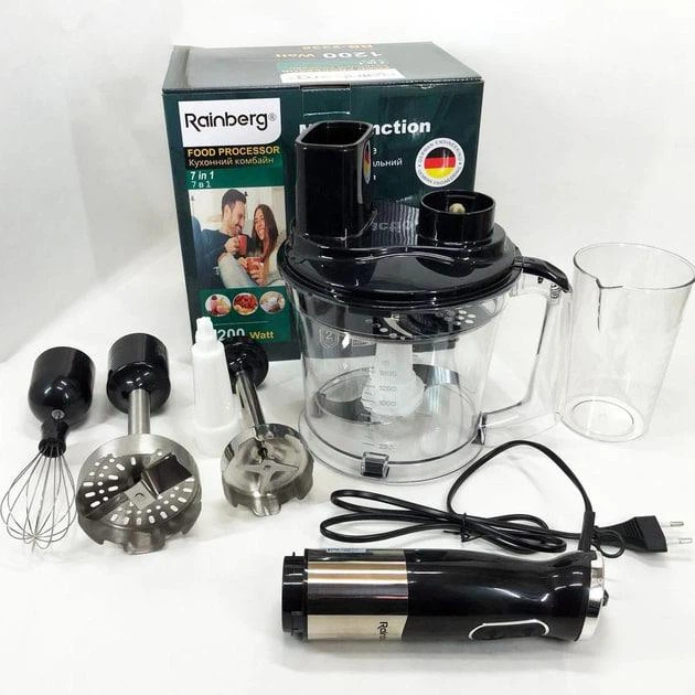 Багатофункціональний занурювальний блендер Rainberg 1200 Вт чаша 1,5 л ручний блендер з насадками нержавіюча сталь