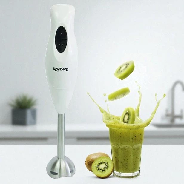 Блендер заглибний Rainberg 400Вт, подрібнення овочів, фруктів, горіхів, приготуванні супів-пюре, смузі та соусів, Білий (ОІ2