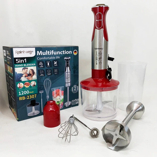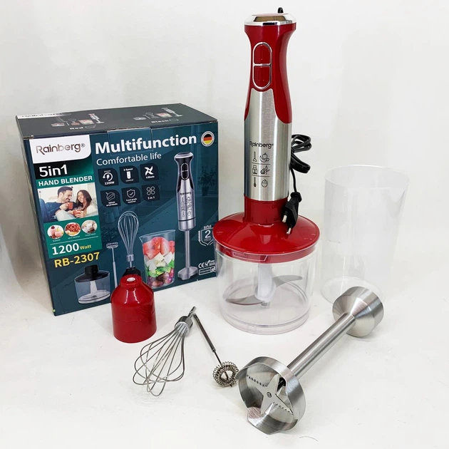 Блендер 5в1 Rainberg RB-2307 багатофункціональний занурювальний та стаціонарний Red