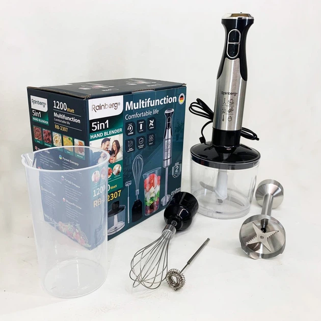 Блендер 5в1 Rainberg RB-2307 багатофункціональний занурювальний та стаціонарний Black