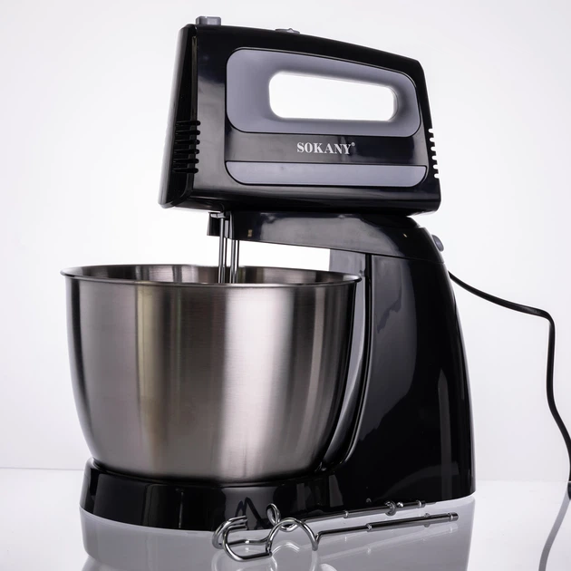 Стаціонарний міксер Sokany 3.5 л 400 Вт віночок для тесту чорний помічник для випічки (577821)