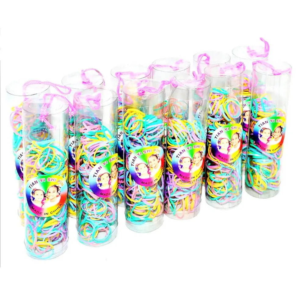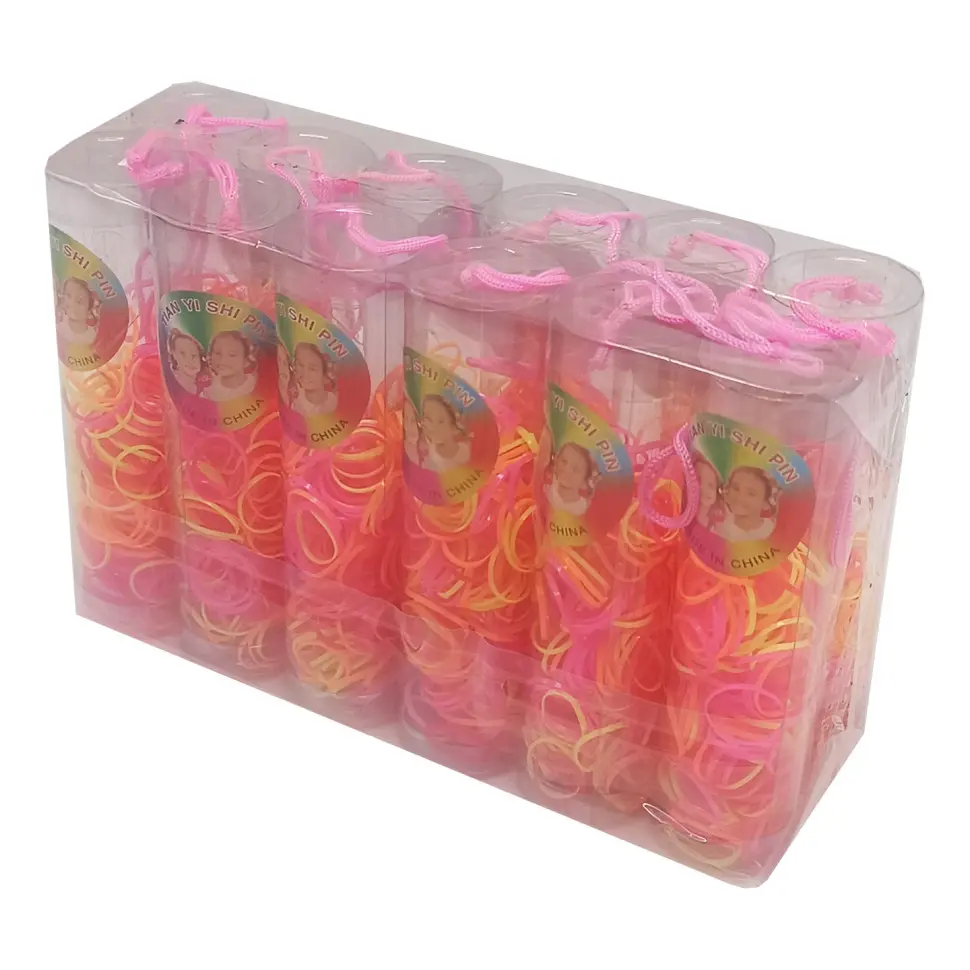 Силіконові резинки для волосся Різнокольорові 0308-587-2 в тубі, 12 шт