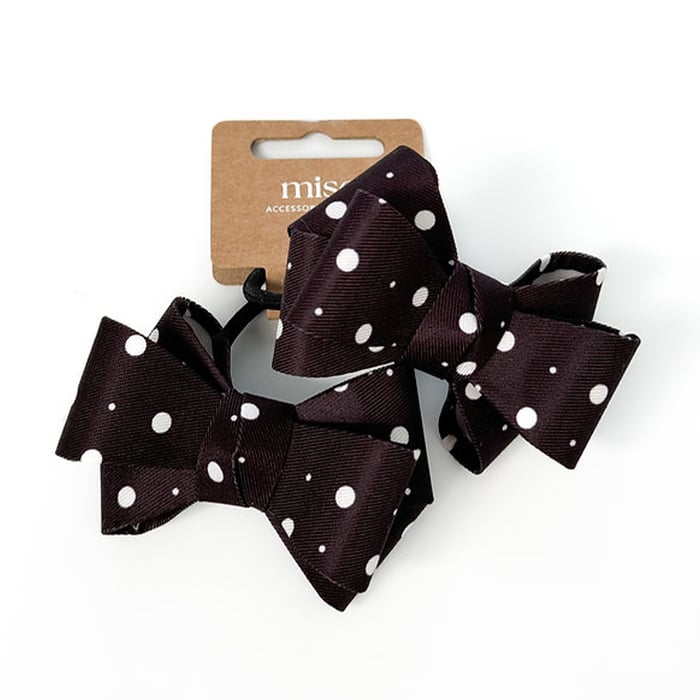 Бантик для волосся Miso Текстиль, на резинці, чорний у горошок, 8*5.5 см, 2 шт (BAN42)