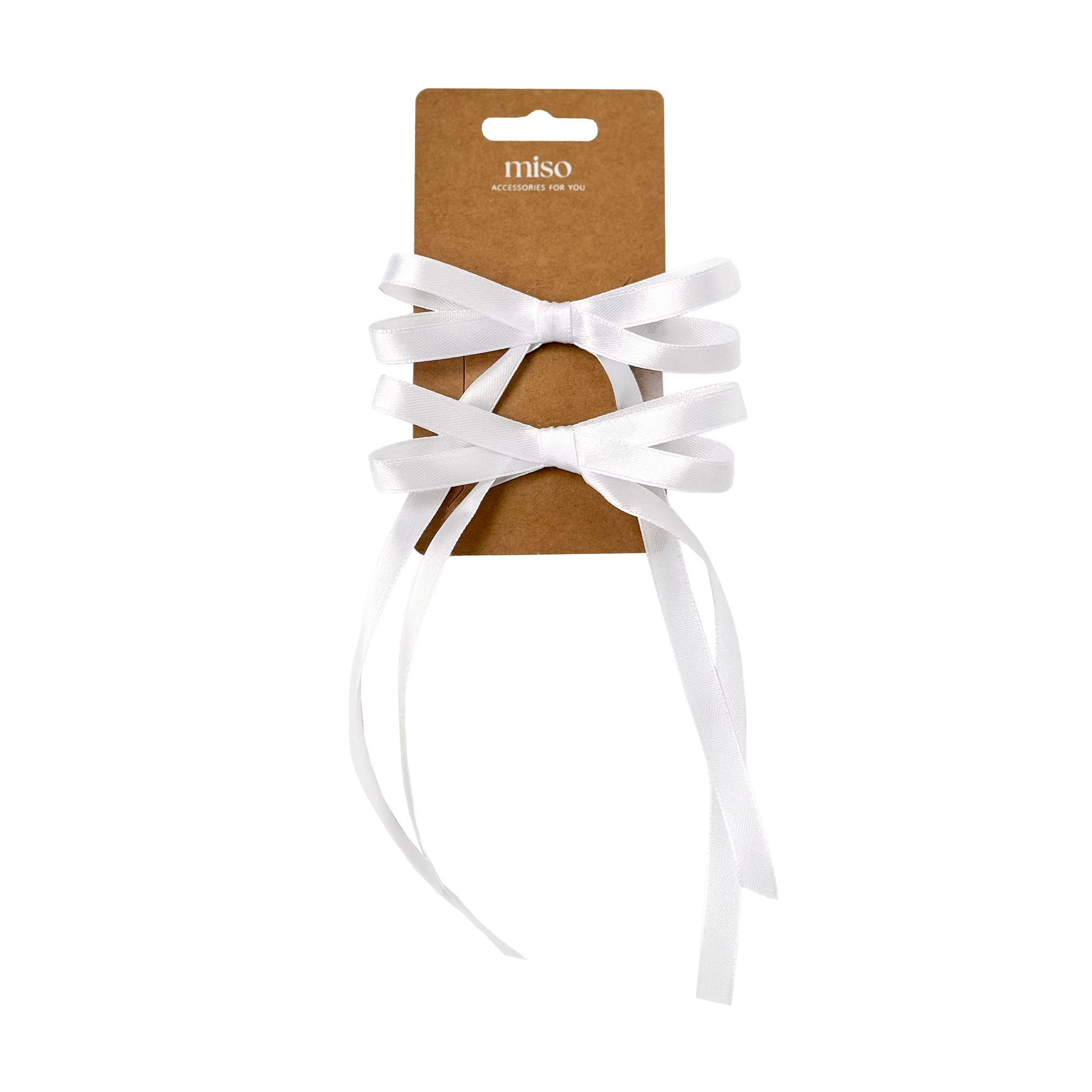Бант для волосся Miso Атлас, довгі стрічки, з зажимом, білий, 2 шт (BAN82)