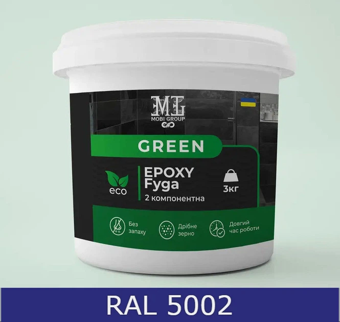 Затірка для плитки епоксидна Green Epoxy Fyga 3кг + Змивка для епоксидної фуги Lava (легко змивається,дрібне зерно) Синій RA