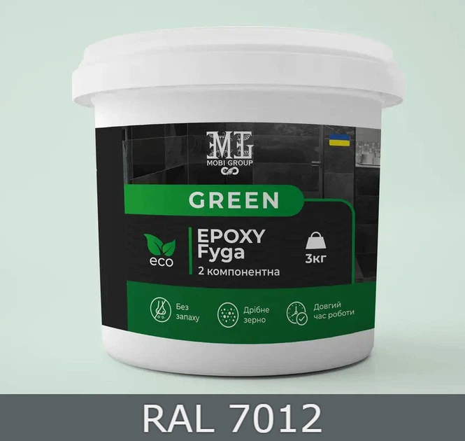Затірка для швів (Фуга) Green Epoxy Fyga 3кг + Змивка для епоксидної фуги Lava (легко змивається,дрібне зерно) Світло сірий