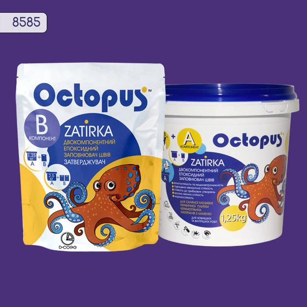 Двокомпонентна епоксидна затирка фуга для плитки і мозаїки ТМ "OCTOPUS", колір 8585 1,25 кг