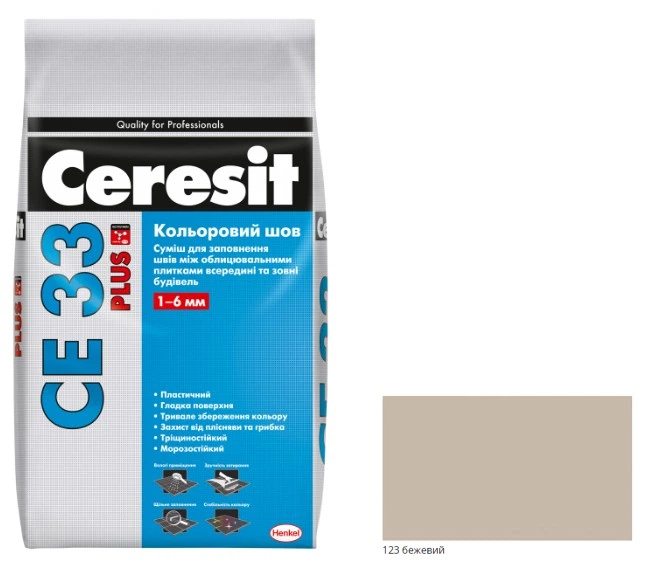Затирка для швів CERESIT CE33/123 Plus до 6 мм бежевий, 2кг
