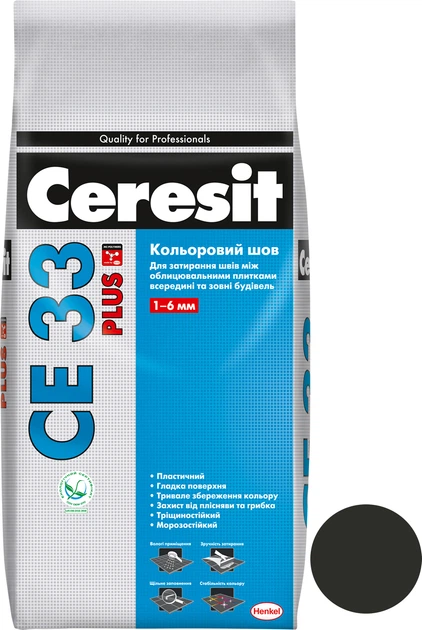 Затирка для швів Ceresit CE33 Plus 117 2 кг (мішок) Чорна (Е28784)