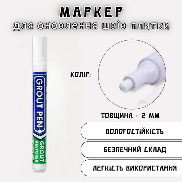 Маркер для оновлення швів плитки GroutPen, білий