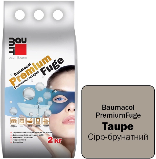 Фуга (затирка для швів) однокомпонентна цементна для плитки Baumit PremiumFuge Taupe Сіро-коричневий клас CG2 2 кг (59457520